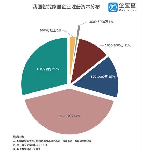 智能家居如此龐大的市場(chǎng)需求和商業(yè)布局,迄今為止整個(gè)市場(chǎng)還沒有一家能夠形成較大的規(guī)模。從注冊(cè)資本上看,涉足智能家居的企業(yè)大部分注冊(cè)資金在500萬(wàn)以下,注冊(cè)資金在5000萬(wàn)以上的企業(yè)僅為2%。