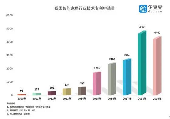 潛力巨大的“藍(lán)海”市場(chǎng)早已廠商云集,智能家居行業(yè)技術(shù)專利申請(qǐng)量迅速攀升。企查查數(shù)據(jù)顯示,我國(guó)智能家居相關(guān)專利申請(qǐng)總量早已破萬(wàn),2015年開始我國(guó)智能家居行業(yè)技術(shù)邁入快速發(fā)展期,2018年達(dá)到巔峰,數(shù)量達(dá)4863件,較2017年同比增長(zhǎng)了76%,2019年專利申請(qǐng)數(shù)稍減。由此可見,智能家居市場(chǎng)競(jìng)爭(zhēng)較為激烈,各路玩家步伐急促。