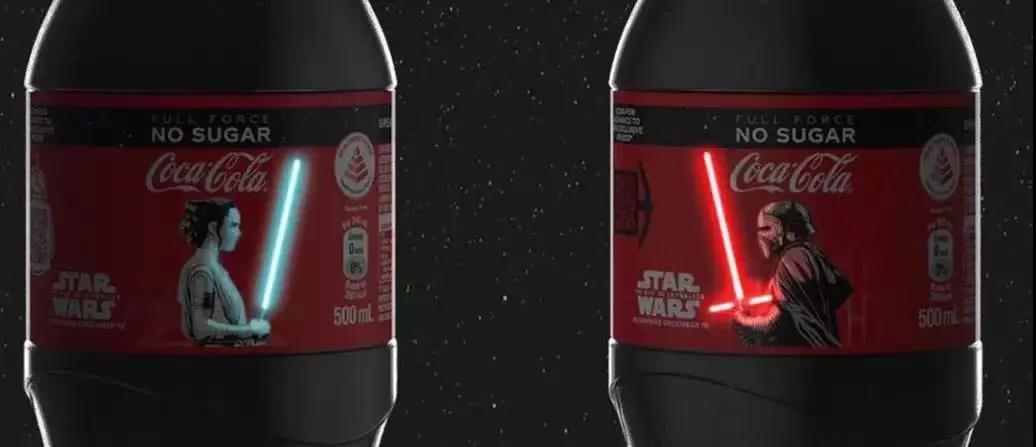 他們將電影《星球大戰(zhàn)》中光劍以O(shè)LED屏幕的方式設(shè)計(jì)在了可口可樂(lè)瓶身上。粉絲只要觸摸包裝光劍圖案,光劍就會(huì)發(fā)光,由電池發(fā)光的瓶身可以被點(diǎn)亮500次。