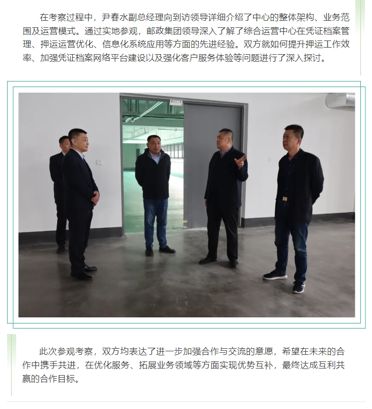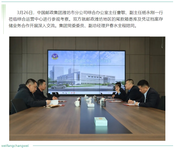 中國(guó)郵政集團(tuán)濰坊市分公司領(lǐng)導(dǎo)到集團(tuán)綜合運(yùn)營(yíng)中心參觀考察